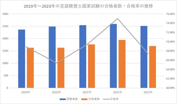 言語聴覚士の過去5年の合格者数・合格率についてまとめました。| 2019年 | 2020年 | 2021年 | 2021年 | 2023年 | |